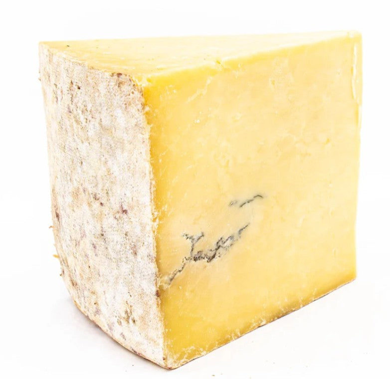 West Country Blue Veined Cheddar Cheese 200g - Made the traditional way and clothbound in the lush hills of East Somerset. Crafted entirely by hand and aged for around 12-18 months in a special hillside cheese cellar. Mellow but complex in flavour.