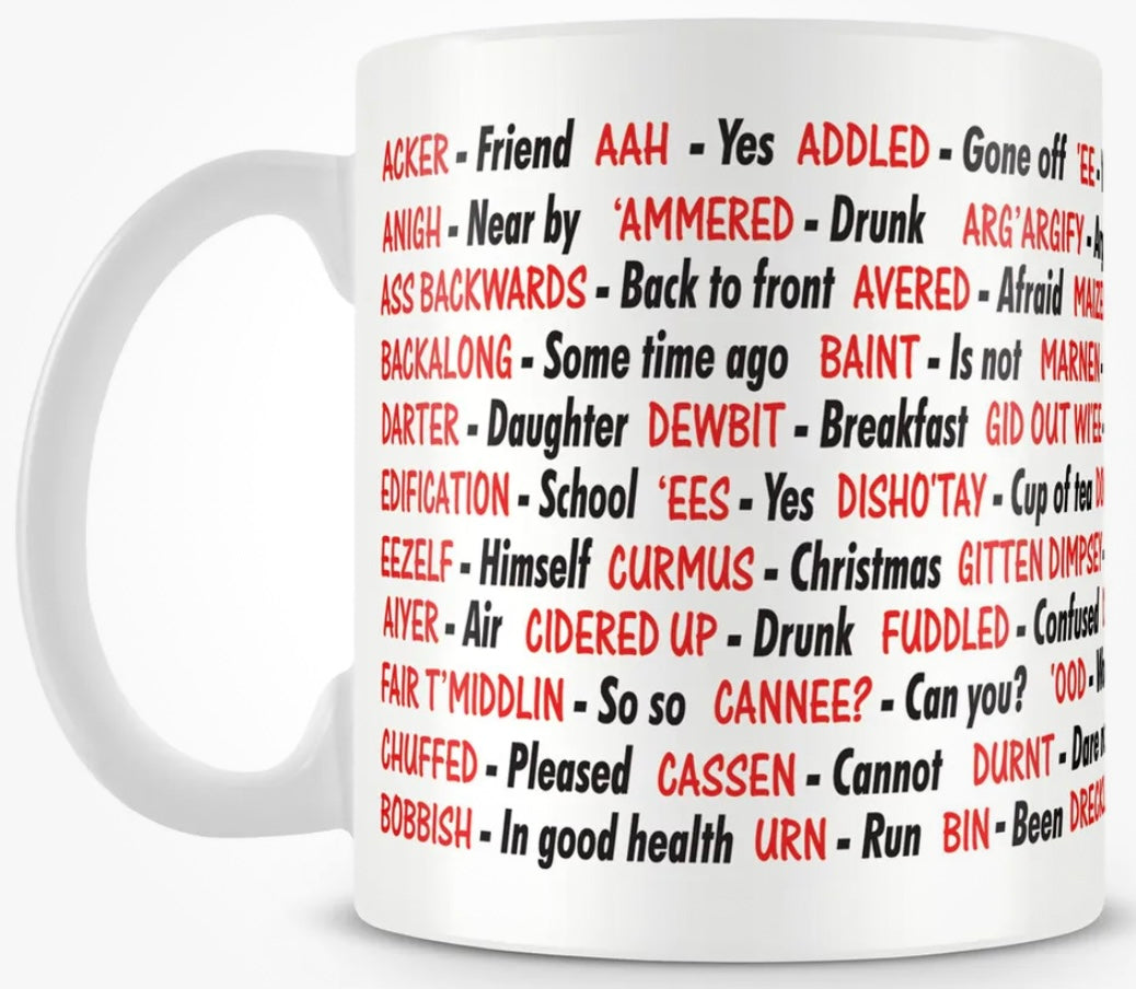 A ceramic ‘Durham’ style Mug with Somerset Dialect Translator Capacity: 11floz